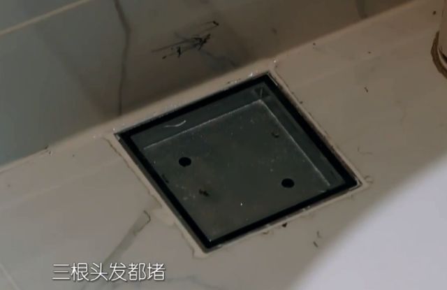 墙角大面积受潮,痕迹很明显,靠墙这边整个都是湿的。卫生间下水道的面板也非常粗糙,只要有三根头发就会堵塞。而且这么普通的地漏就要一百多块钱。