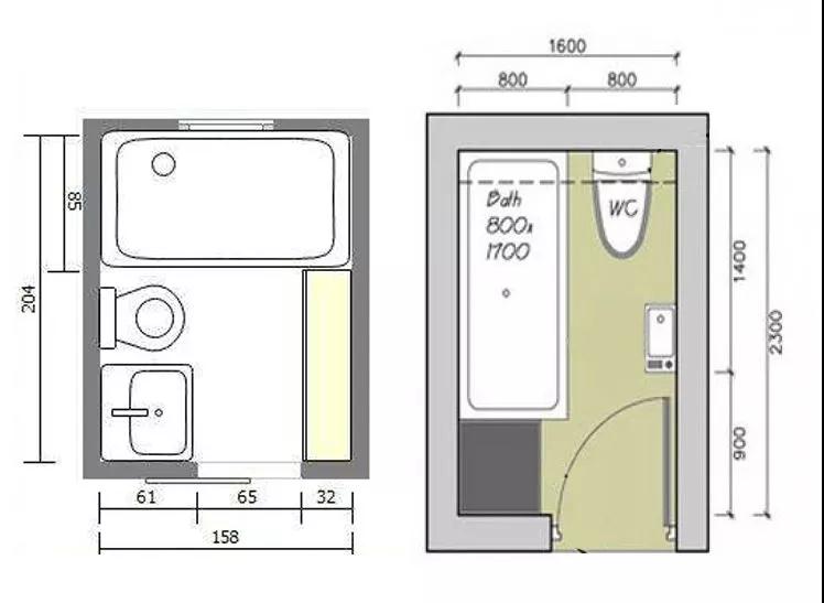 举个例子,比如下面这样的正方形卫生间,一般都是左边的布局,也可以改造下变成右边这样,更加科学。