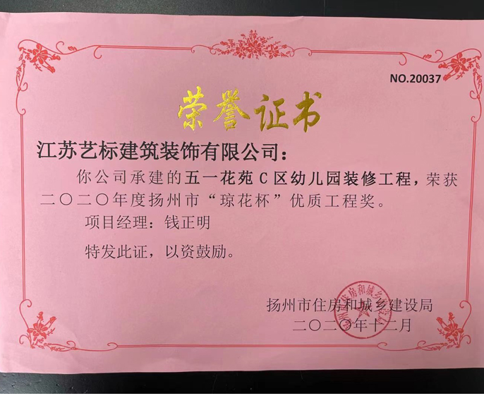 五一花苑幼儿园荣誉证书