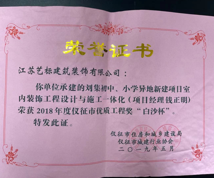 刘集小学荣誉证书