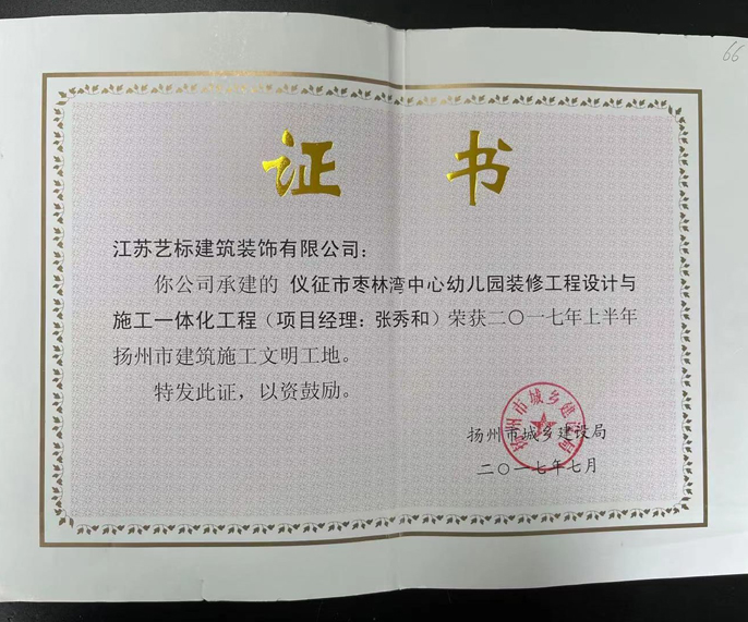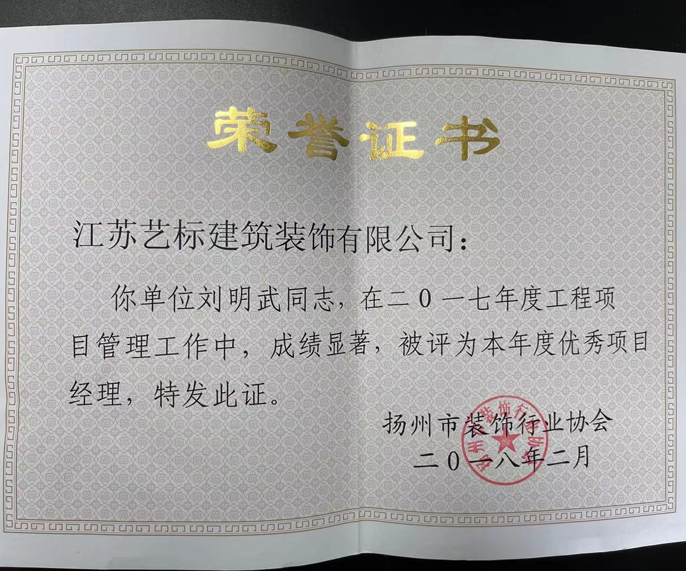 江苏省装饰装修行业会员证书